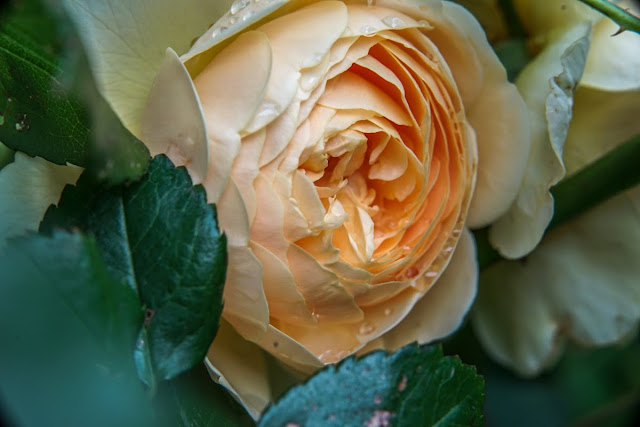 前日の雨で バラの花弁は痛み寝倒れていましたが 実にふっくらとした穏やかなバラでした。
