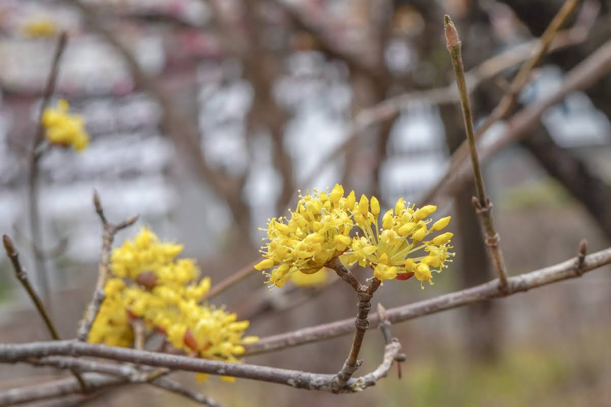 2月26日 何度か通いました そして やっと山茱萸と寒非桜が咲きました。 ただシナマンサクの花が早く咲きすぎて色が濁っているようです。